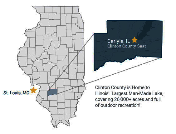 Located less than an hour from St. Louis, Missouri, Clinton County leads the state of Illinois in dairy farming and pork, wheat and egg production. In addition, the county boasts Carlyle Lake – the largest man-made lake in Illinois covering over 26,000 acres filled with outdoor recreation opportunities. Country roads wind past acres of farmland, across the Kaskaskia River and through villages and towns established in the 1800s.